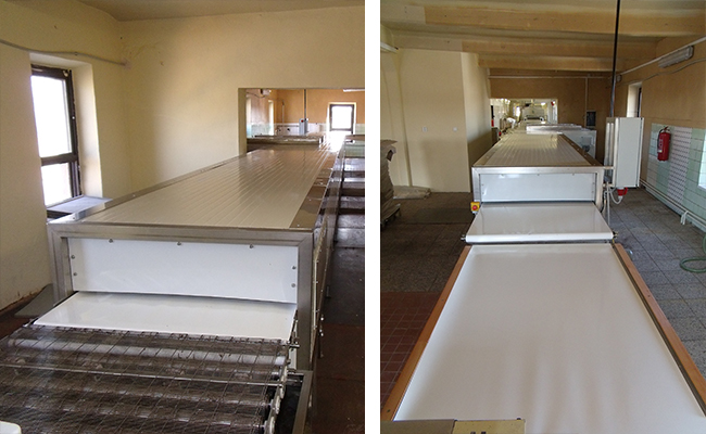 Výroba jednoúčelových strojů (např. lis na sušenky, podmáčení, chladící tunely, moučné hospodářství, příprava těsta atd.) včetně zapojení do linek a automatického řízení..
